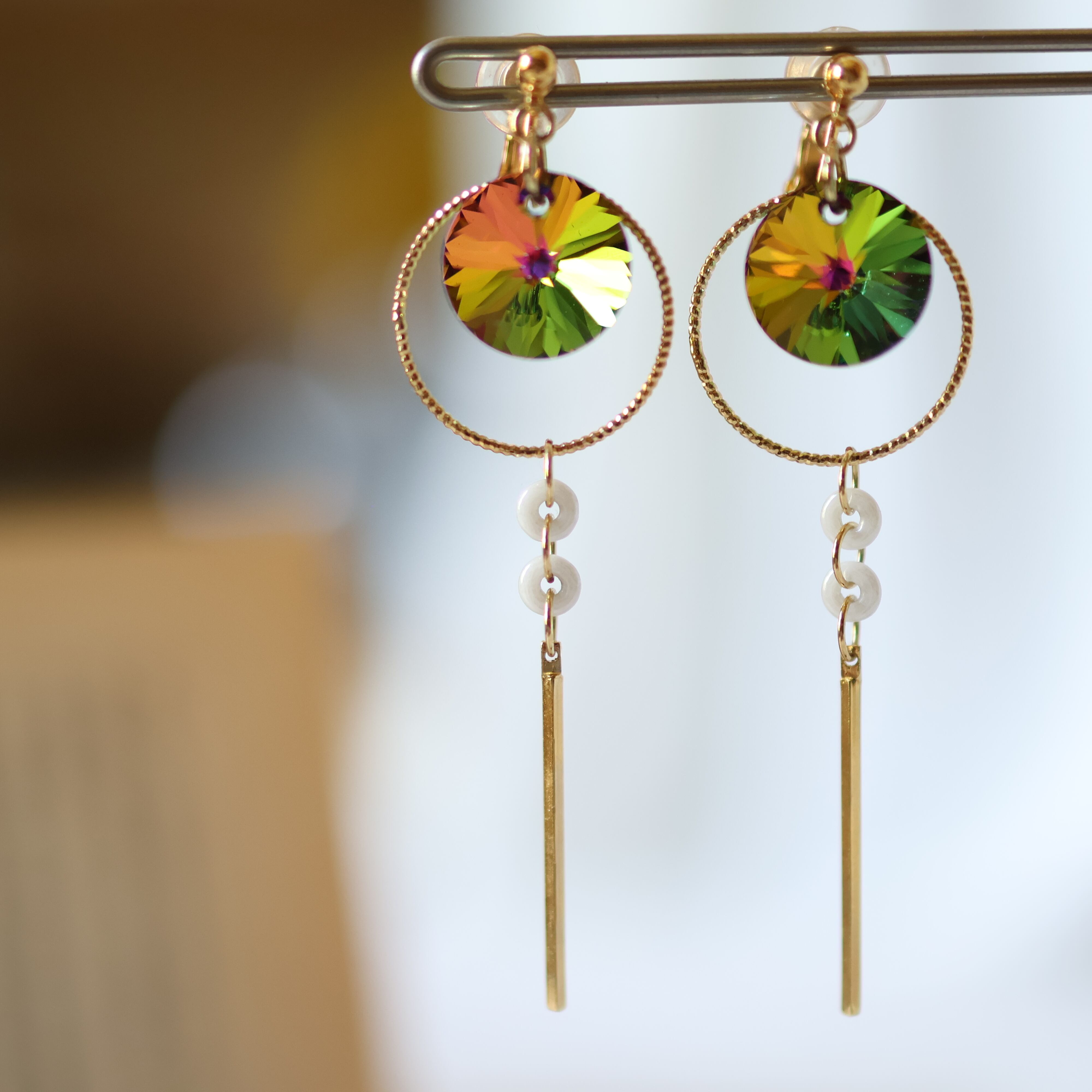 真ん中のタマムシのようなビーズが、スワロフスキー✧︎*。